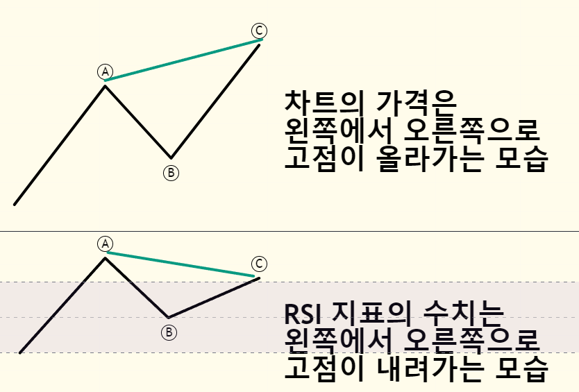 RSI 다이버전스는 가격 차트와 RSI 지표의 움직임이 서로 다른 방향을 가리킬 때 발생합니다. 이는 가능한 추세 반전을 나타낼 수 있는 중요한 신호입니다.