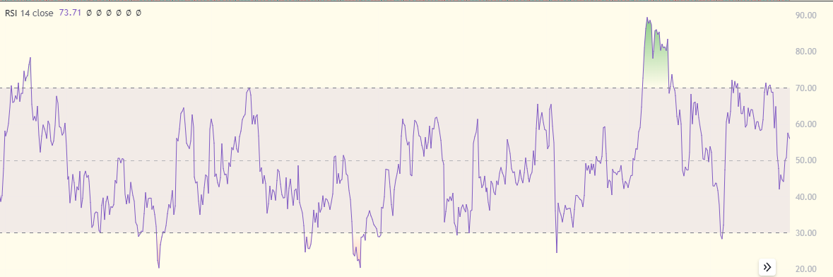 RSI는 0에서 100 사이의 범위 내에서 움직이는 지표로, 일반적으로 14일 기간을 기준으로 계산됩니다. RSI 값이 70 이상이면 자산이 과매수 상태에 있어 가격 하락 가능성이 있음을 의미하고, 30 이하이면 과매도 상태에 있어 가격 상승 가능성이 있음을 나타냅니다.