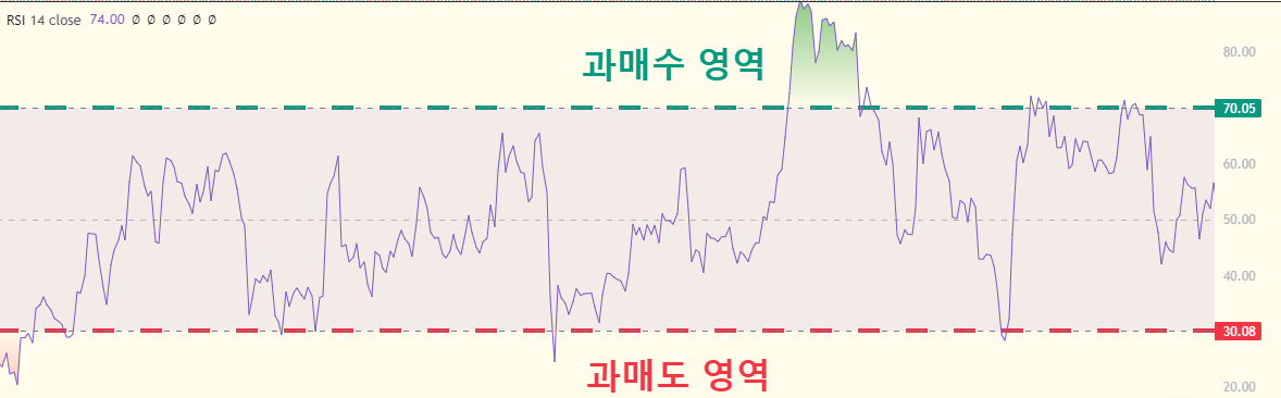 RSI는 0에서 100 사이의 범위 내에서 움직이는 지표로, 일반적으로 14일 기간을 기준으로 계산됩니다. RSI 값이 70 이상이면 자산이 과매수 상태에 있어 가격 하락 가능성이 있음을 의미하고, 30 이하이면 과매도 상태에 있어 가격 상승 가능성이 있음을 나타냅니다.