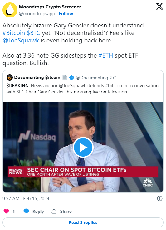 겐슬러는 인터뷰에서 소속사의 비트코인 ETF 승인에 대해 논의할 때도 신중을 기했습니다.