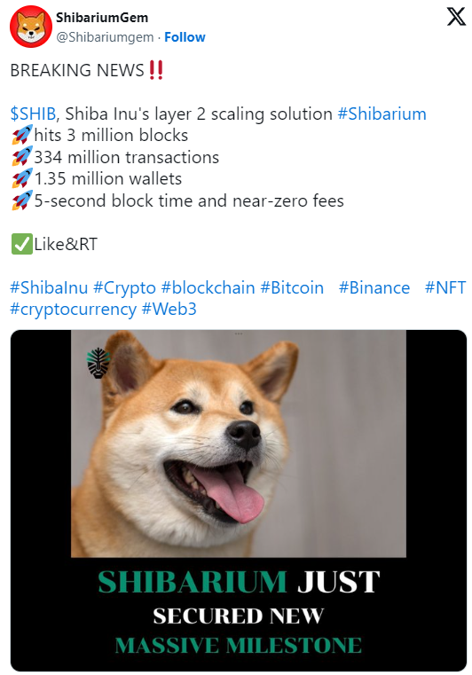 또한 시바 이누는 8월 출시된 이후 레이어 2 네트워크 시바리움이 코인의 사용성을 강화하는 등 밈 토큰에 대한 몇 가지 견고한 기초를 자랑한다는 점도 기억할 가치가 있습니다.