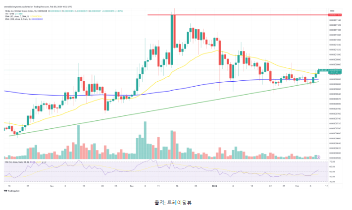 이는 암호화폐 시장 전체가 3% 상승한 날에 상승한 것으로, SHIB는 지난 한 주 동안 3.5%, 지난 2주 동안 5.5% 상승했습니다.