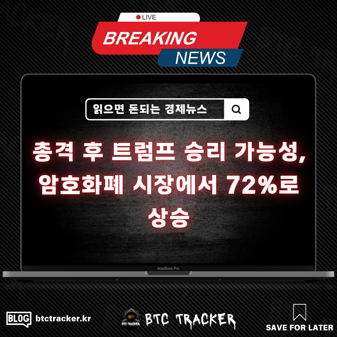 토요일 펜실베이니아에서 열린 집회에서 도널드 트럼프 전 미국 대통령에 대한 암살 시도가 있었으나 실패했습니다. 이 사건 이후, 트럼프의 대통령 당선 가능성이 높아졌습니다. 세계 최대 예측 시장인 폴리마켓에 따르면 트럼프의 당선 가능성은 60%에서 72%로 상승했으며, 이는 트럼프에 대한 대중의 지지가 커졌음을 시사합니다.