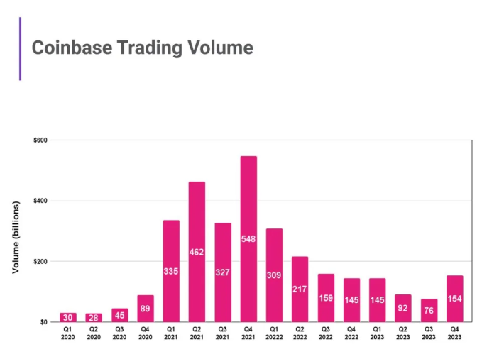 그래프를 보면 투자자들이 아직 암호화폐로 돌아오지 못했다는 것이 분명합니다. 2021년 마지막 강세장 동안 플랫폼의 거래량이 4분기에만 5,480억 달러 이상을 넘어섰음을 알 수 있습니다. 가장 최근 수익 보고서를 기준으로 총 거래량은 1,540억 달러에 불과하며, 이는 암호화폐가 잔혹한 상황에 처했을 때 마지막으로 본 수준입니다.