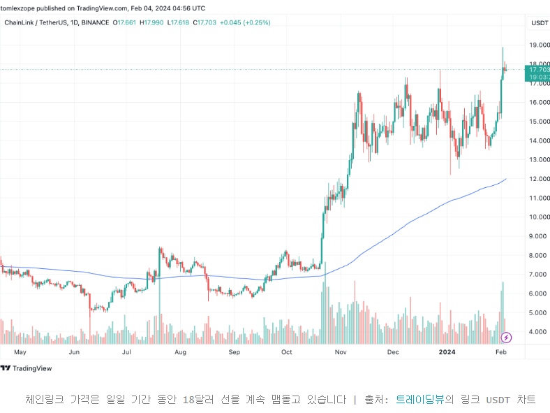 이 글을 쓰는 현재 링크 토큰의 가치는 $17.86이며, 이는 지난 날 거의 1.5%의 가격 급등을 반영합니다.