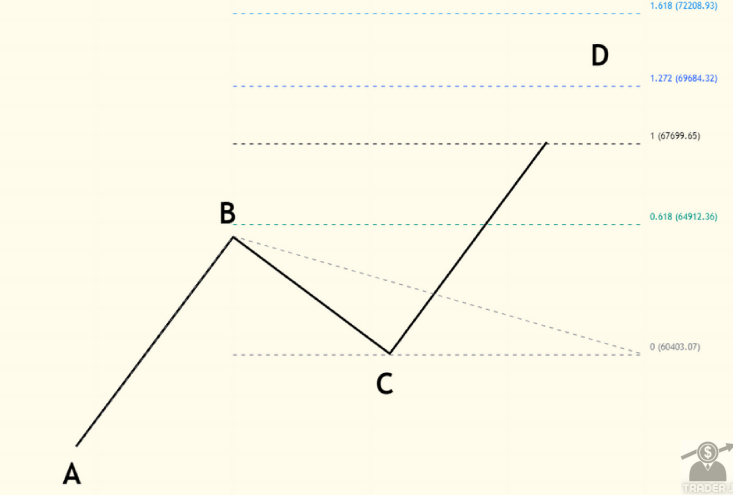 - D 지점 예측: 가장 일반적으로 사용되는 확장 수준은 1, 1.272와 1.618입니다. CD 구간이 AB 구간의 길이를 확장하는 이 수준 중 하나에서 종료될 것으로 예상할 수 있습니다. 트레이더는 이러한 수준 중 하나에서 가격 반응을 주시하여 D 지점을 예측합니다.